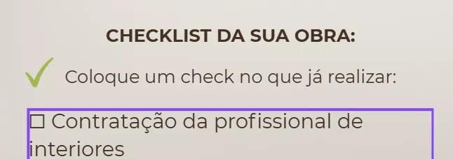 Os primeiros clientes que adquirirem o Ebook, ganharão acesso ao nosso Checklist de obra, para que possa ir completando ao passo que a obra vai avançando.
